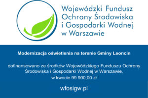 W dniu 22 listopada 2024 r. dokonano odbioru robót budowlanych związanych z realizacją zadania pn.: „Modernizacja oświetlenia na terenie Gminy Leoncin”. Zadanie w 80% zostało dofinansowane ze środków Wojewódzkiego Funduszu Ochrony Środowiska i Gospodarki Wodnej w Warszawie w ramach Programu „Modernizacja oświetlenia”. Celem programu jest: